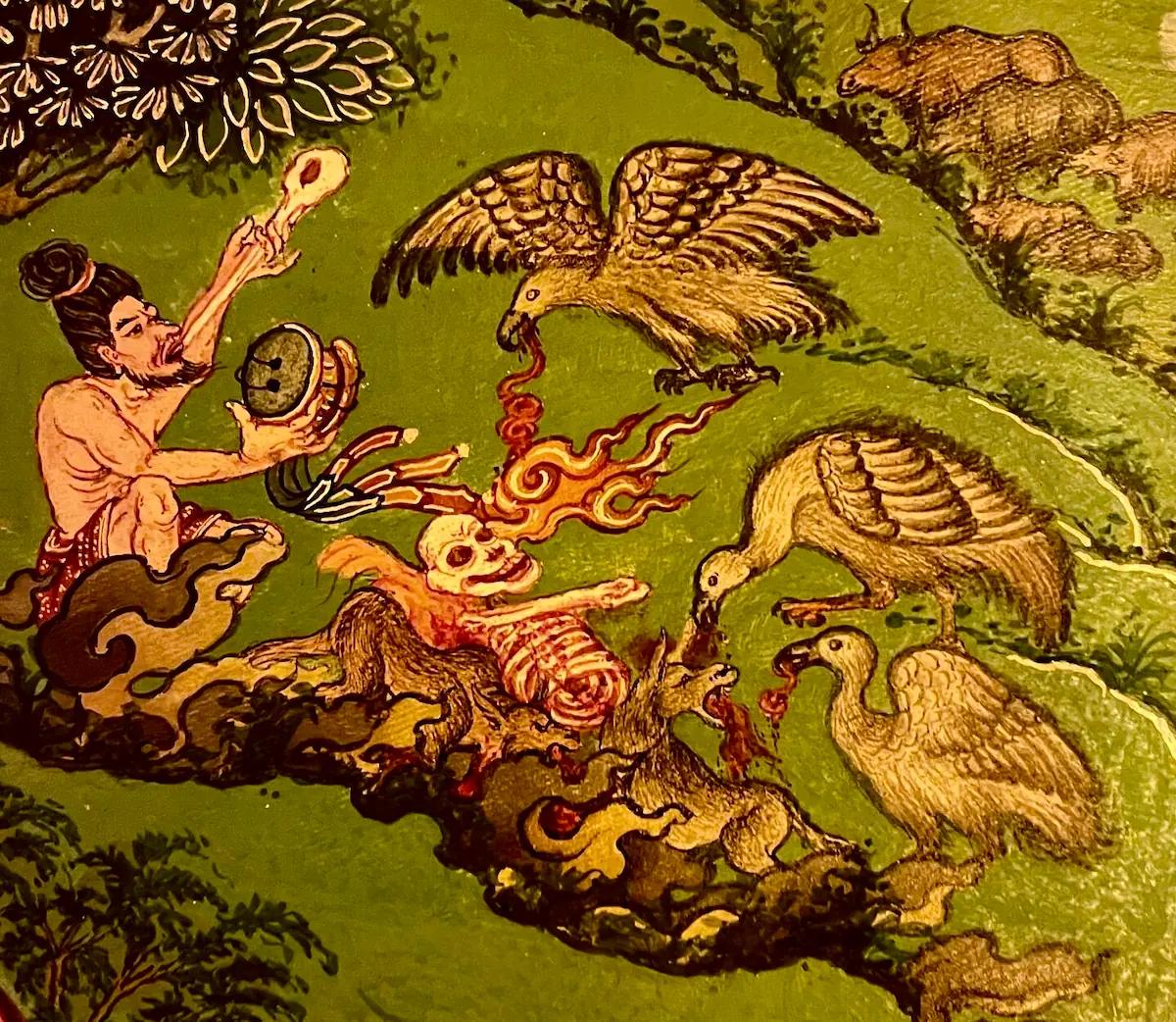 Ритуал становится беспощадной медитацией о разложении и непривязанности. Он напрямую бросает вызов отождествлению эго с физической формой, показывая, что тело — лишь временное скопление элементов, которое должно вернуться земле и воздуху.